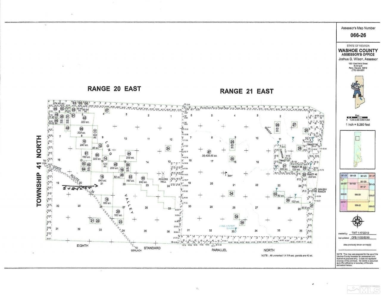A full section, 640 acres, of level Nevada Land ready for you and your dreams. Located in NW Washoe County on State Route 34, near the 8A turn off to Via, NV and Cedarville, CA. Easy access from the road. LA Water & Power Co. transmission line to the East. Near Massacre Rim Dark Sky area and Sheldon National Wildlife refuge., A full section of raw land is getting harder and harder to find. 640 level acres in NW Washoe County priced to sell. Subdividable to 40 acre parcels per Washoe County regulations. One well per parcel upon submittal, permit payment and approval of from the County.