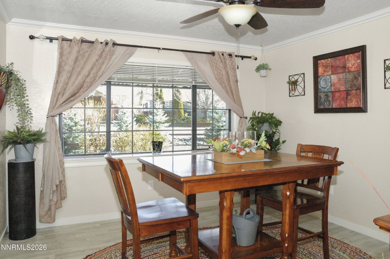 Backyard views of the Sierras set the tone for this spacious 4-bedroom home in Sunridge. On an elevated corner lot, you'll enjoy wide-open mountain backdrops. Inside, the layout gives everyone room to spread out, and separate living and dining rooms make hosting holidays, game nights, or quiet evenings easy. The 3-car garage plus dedicated RV parking means your truck, boat, or weekend toys all have a home (no driveway shuffle required). Commuting is simple with quick access to Carson City, Lake Tahoe, and Minden. The HVAC system has been upgraded with a new furnace and larger ductwork for improved efficiency and airflow. The roof was replaced in 2024, and the interior and exterior has new paint.