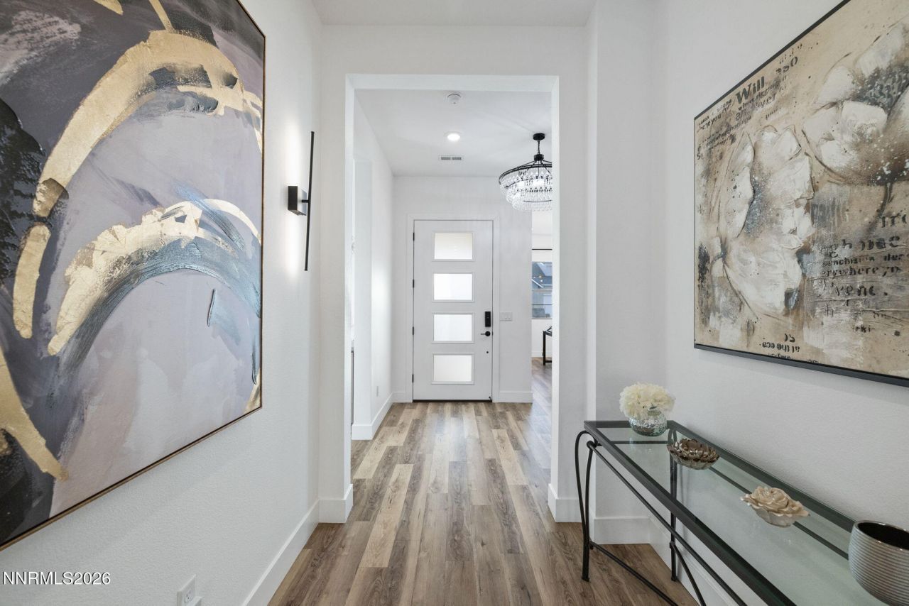 Welcome to 11658 Sugarloaf Peak Drive in Spanish Springs, a beautifully upgraded single story home located in the desirable Shadow Hills community by Ryder Homes within the Harris Ranch master planned neighborhood. This newer construction home offers the rare opportunity to purchase a move in ready property that feels even better than new construction, with completed landscaping, designer upgrades, and the option to purchase the home fully furnished. Built with Ryder Homes signature open concept design, the home offers approximately 2,632 square feet with 3 bedrooms, 3 bathrooms, and a flexible office that can serve as a fourth bedroom. The spacious layout was designed for both comfortable everyday living and entertaining. Inside, the home features an open great room concept with abundant natural light and upgraded wall mounted lighting fixtures that add a modern designer feel throughout the home. The kitchen opens directly to the main living and dining spaces, creating an inviting central gathering area. The primary suite offers a spa inspired retreat with a freestanding soaking tub, dual shower heads, and a spacious bathroom layout designed for relaxation. Two additional bedrooms are connected by a convenient Jack and Jill bathroom, while the fourth bedroom has been thoughtfully configured as an office with built in cabinetry, making it ideal for working from home or creating a quiet study space. One of the biggest advantages of this property is the fully completed landscaping. Many new construction homes require buyers to finish the yard after purchase, but this home already offers a professionally designed outdoor space featuring a paver patio, turf lawn, outdoor lighting, and a dirt fire pit gathering area. A gas hookup is also installed for outdoor grilling or a future outdoor kitchen. The landscaping includes Jam Maple, Oak, and Fruitless Pear trees that will continue to mature and provide shade and privacy. The front yard is zero scaped for low maintenance living. Another unique feature is the option to purchase the home fully furnished and decorated, allowing buyers to move in immediately. Just bring your toothbrush and start enjoying the home from day one. Shadow Hills in Spanish Springs offers newer homes, modern architecture, and convenient access to Pyramid Highway, outdoor recreation, and the greater Reno Sparks area.