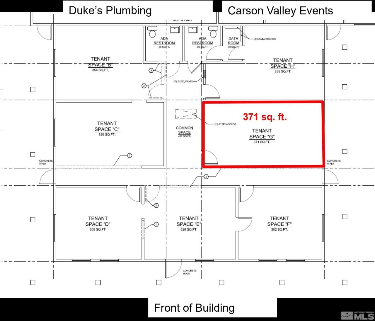 Great office or retail location in South Gardnerville. Open floor plan office. New paint and carpet. Utilities and Common Area Maintenance included. Visibility from Industrial Way, situated at the entrance to the property. Abundant parking. Common restrooms. Signage available on the building as well as on the monument sign. Co Tenants include: Duke's Plumbing, Silver Star Automotive, Reid Dental, High Country Propane and Carson Valley Events. Coming Soon: Douglas County Jiu Jitsu. See documents link to view marketing package.