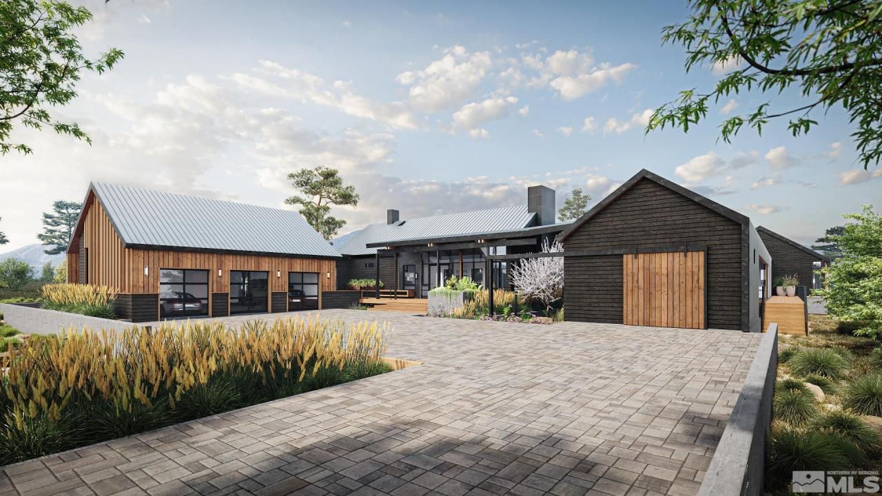 Discover 27 Glenhaven Dr, an exclusive buy-and-build opportunity at Reno's most sought-after new custom home community. This unique offering pairs a prime 2.5-acre homesite with conceptual plans for a 6,772-sqft bespoke residence. With stunning Mt. Rose views, direct creek access, and a generous building area, this homesite is priced at $1.75M and will be delivered with water, sewer, electric and natural gas connections in place., The vision for this singular residence was deeply influenced by the unique character of the Nevada highlands, allowing the natural landscape to inform the design. The layout and spaces of the home are thoughtfully integrated with the environment, ensuring a harmonious connection with nature and its vistas. The material palette, chosen for its durability, beauty, and honesty, complements this intimate relationship, creating a residence that is not just a shelter but a living extension of the land itself. Shou Sugi Ban burnished timber, hot-rolled steel, and board-form concrete provide muscularity, depth, and a timelessness grounded in nature to both the interior and exterior of the home. Designed for entertaining, the sprawling main home features 5 bedrooms, 5.5 bathrooms, a massive loft-like Great Room with open kitchen/dining areas, and a more intimate wine room and lounge area. Interior spaces connect directly to a large central courtyard area with multiple patio areas and a central swimming pool. An optional 1-bedroom guest house is connected to the main structure by timber beams, evoking a sense of both separation and connection. This project offers an exclusive opportunity to work with one of Reno's premier custom home builders, known for quality craftsmanship and exceptional client service. The construction estimate for this unique residence is $5,845,000, with a total anticipated investment of $7,545,000. Embrace modern luxury living in peaceful surroundings at Reno's most exciting new private community. Contact us to explore this exclusive buy-and-build package at Glenhaven.