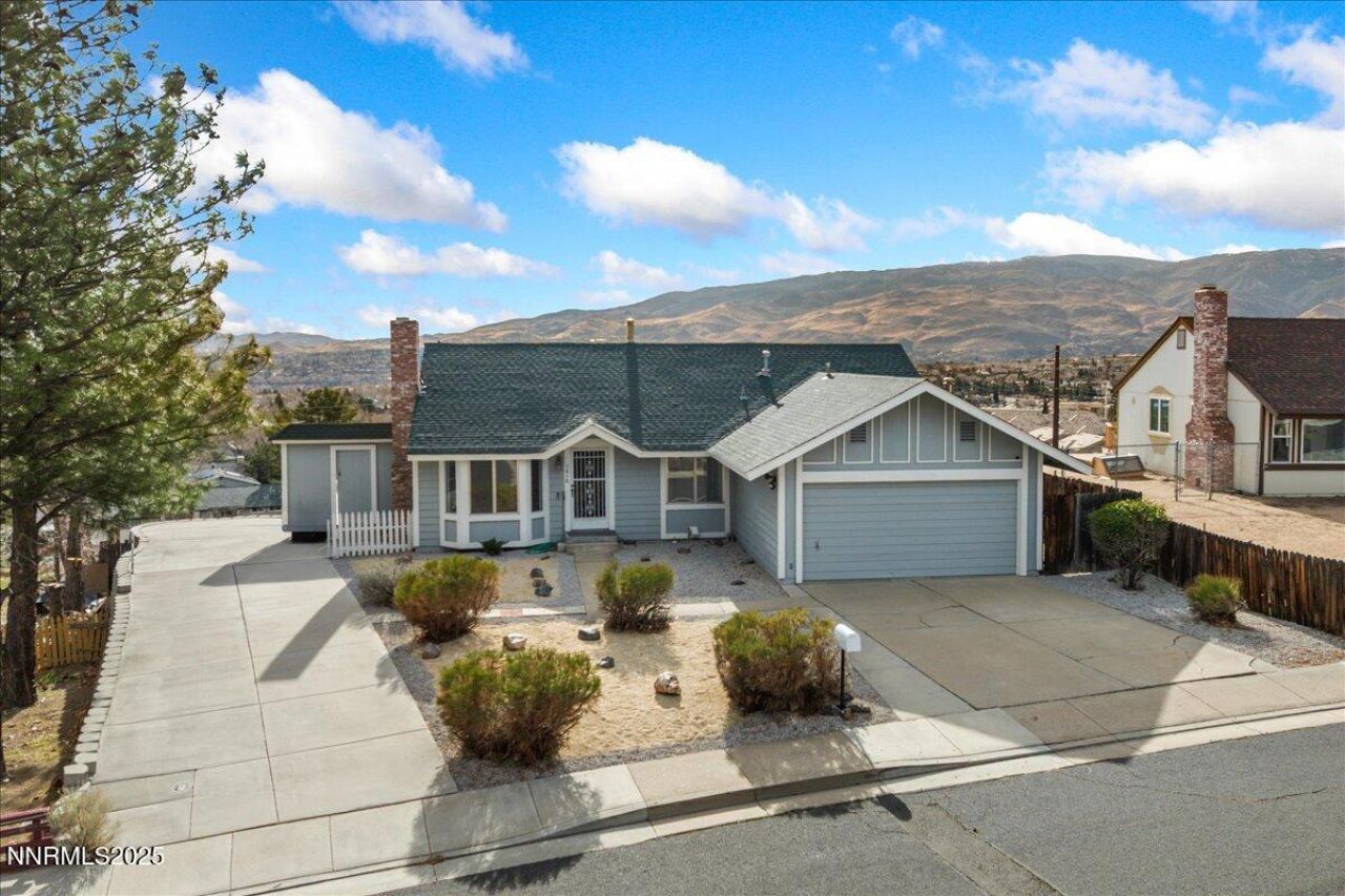 Situated in an elevated setting, this property offers city and mountain views that can be enjoyed from the expansive deck, enclosed sunroom, kitchen, and main living areas. The home's position provides broad outlooks toward downtown Reno and the surrounding foothills. Recent updates include quartz kitchen countertops, new stainless-steel stove, dishwasher, and microwave, updated lighting, and fresh interior paint. New vinyl plank flooring is installed in the main living areas, with new carpeting in the bedrooms. The living and dining areas include a fireplace and connect directly to the deck and sunroom, allowing for convenient access between interior and exterior spaces. The enclosed sunroom features a gas stove and provides year-round usability. Bathrooms have been updated with new quartz vanity countertops and new toilets. Additional features include RV parking, a partial finished two-car garage, zero-scape front yard landscaping, and generous deck space. The property is located with access to downtown Reno, shopping, and major roadways, and offers a combination of elevated views, outdoor living space, and recent interior updates.