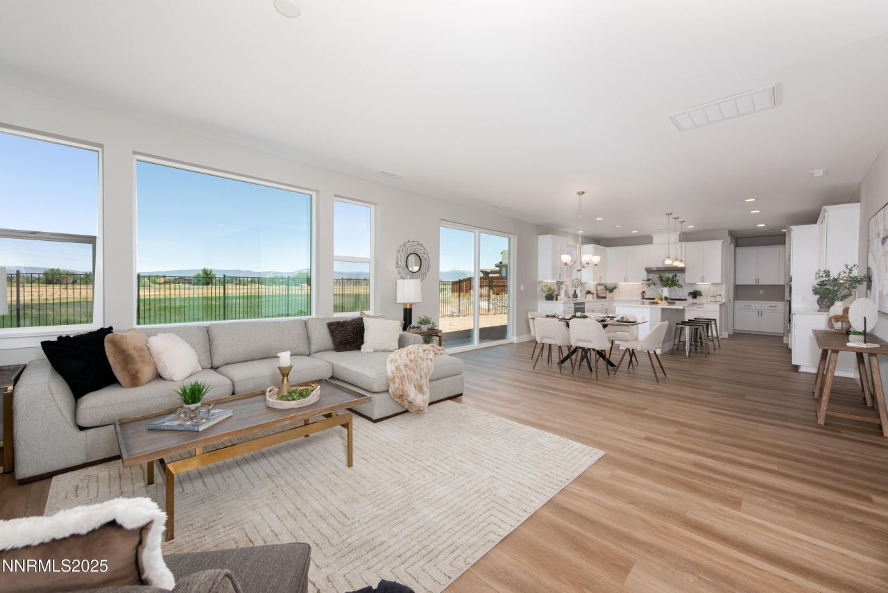 Views, views and more views! Situated on a premium lot, this brand-new home offers breathtaking views of the Sierra Mountains and expansive farmland. With an open-concept layout and no rear neighbors, enjoy both comfort and privacy in a stunning natural setting with no HOA. The main living area features a bright and airy flow between the living room, dining room, and kitchen-perfect for entertaining or everyday living. Over 15k dollars of interior upgrades are included in this home. The kitchen is beautifully appointed with quartz countertops, a stylish tile backsplash, and a spacious walk-in pantry. Additional storage closets are available both downstairs and upstairs. An office area is located at the front of the home on the main floor, adjacent to a full bathroom. Upstairs, you'll find two generously sized guest bedrooms, a full guest bath, a dedicated laundry room, a bonus room and an oversized primary suite with stunning Sierra Mountain views and plenty of room to relax. Step into the serene backyard, complete with RV parking, and enjoy uninterrupted views of surrounding farmland. Located in Gardnerville, this property is close to shopping, healthcare, and local services. South Lake Tahoe is about 25 minutes away, and Carson City is about a 30-minute drive. The area is known for its access to the outdoors, with nearby trails, fishing spots, and mountain views. Gardnerville also offers walkable downtown, community events, and proximity to historic Genoa and the Carson Valley. Pictures of the home may reflect a different property with a similar floorplan, finishes may vary.